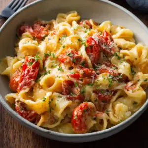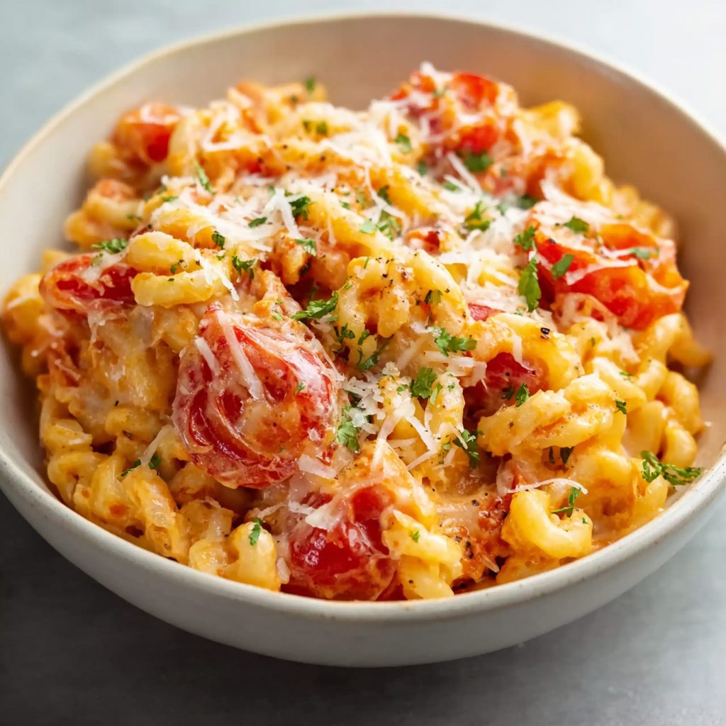 With the perfect balance of gooey, crispy, and savory, the 6-Cheese Roasted Tomato Pasta Bake isn’t just food—it’s a warm, baked hug on a plate.