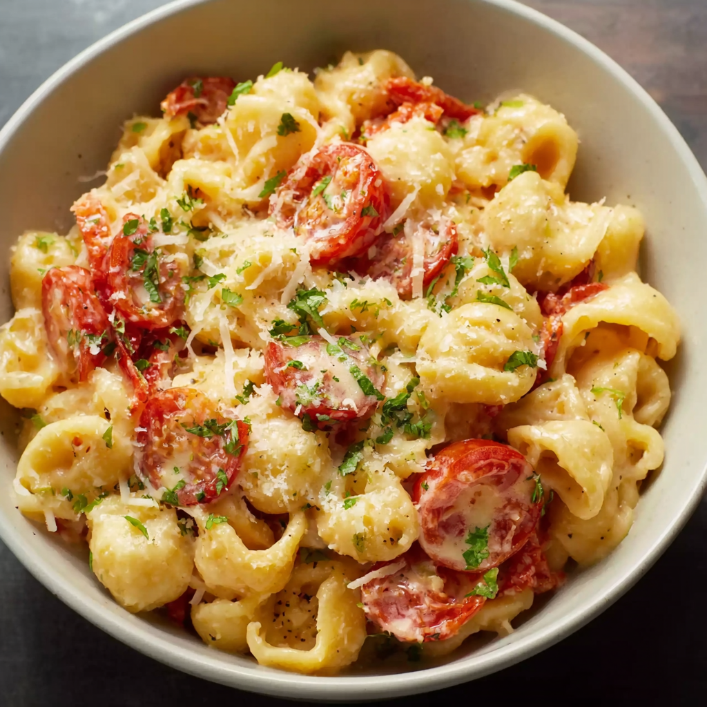 These pasta types offer hollow centers and ridges that capture the creamy cheese sauce and bits of roasted tomato. If you’re curious about different pasta varieties, refer to this pasta list.