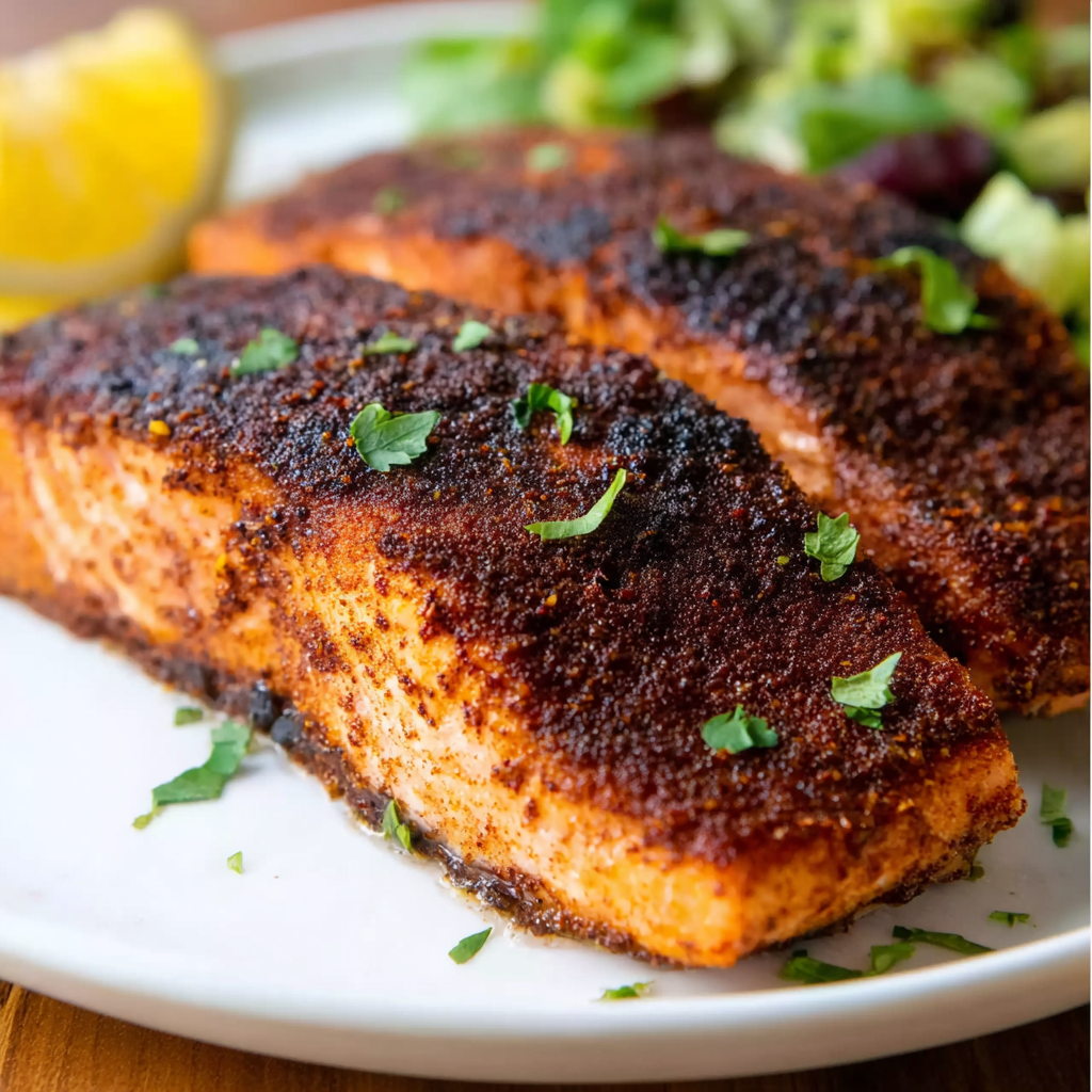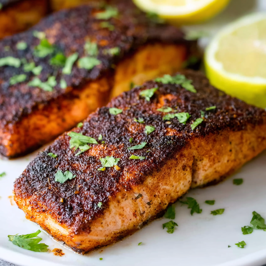 Looking for a bold, flavor-packed dinner that’s ready in minutes? This air fryer blackened salmon recipe delivers a crisp, spiced crust and juicy, flaky center—all in just 10 minutes. Perfect for weeknights or meal prep, it combines the smoky heat of Cajun spices with a refreshing finish of lemon and garlic butter. It’s a game-changing way to enjoy salmon without the hassle of pan-frying.