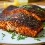 To achieve that perfect blackened crust, the fish is coated in a spice mix containing ingredients like paprika, cayenne pepper, garlic powder, and herbs like thyme and oregano. It’s then quickly cooked—either in a skillet, on a grill, or in our case, in an air fryer—until the surface is crisp and deeply browned. The high heat helps the spices to slightly char, giving the salmon a smoky depth that’s hard to resist.