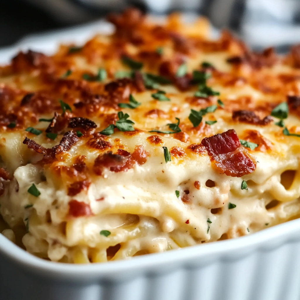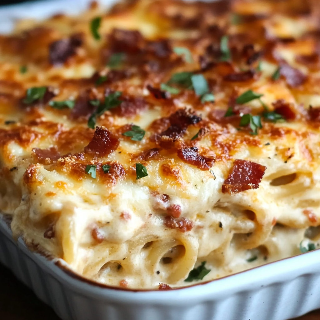 This Bacon Cream Cheese Baked Spaghetti is a rich, creamy, and cheesy twist on the classic baked spaghetti dish. It features layers of tender spaghetti, a velvety cream cheese mixture, a hearty meat sauce, and gooey melted mozzarella, all topped with crispy turkey bacon for the perfect finishing touch.