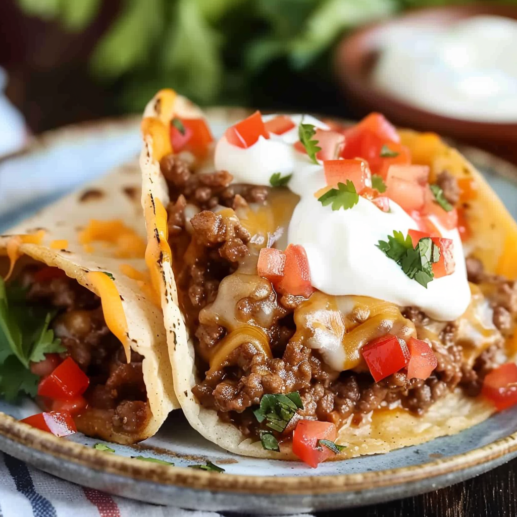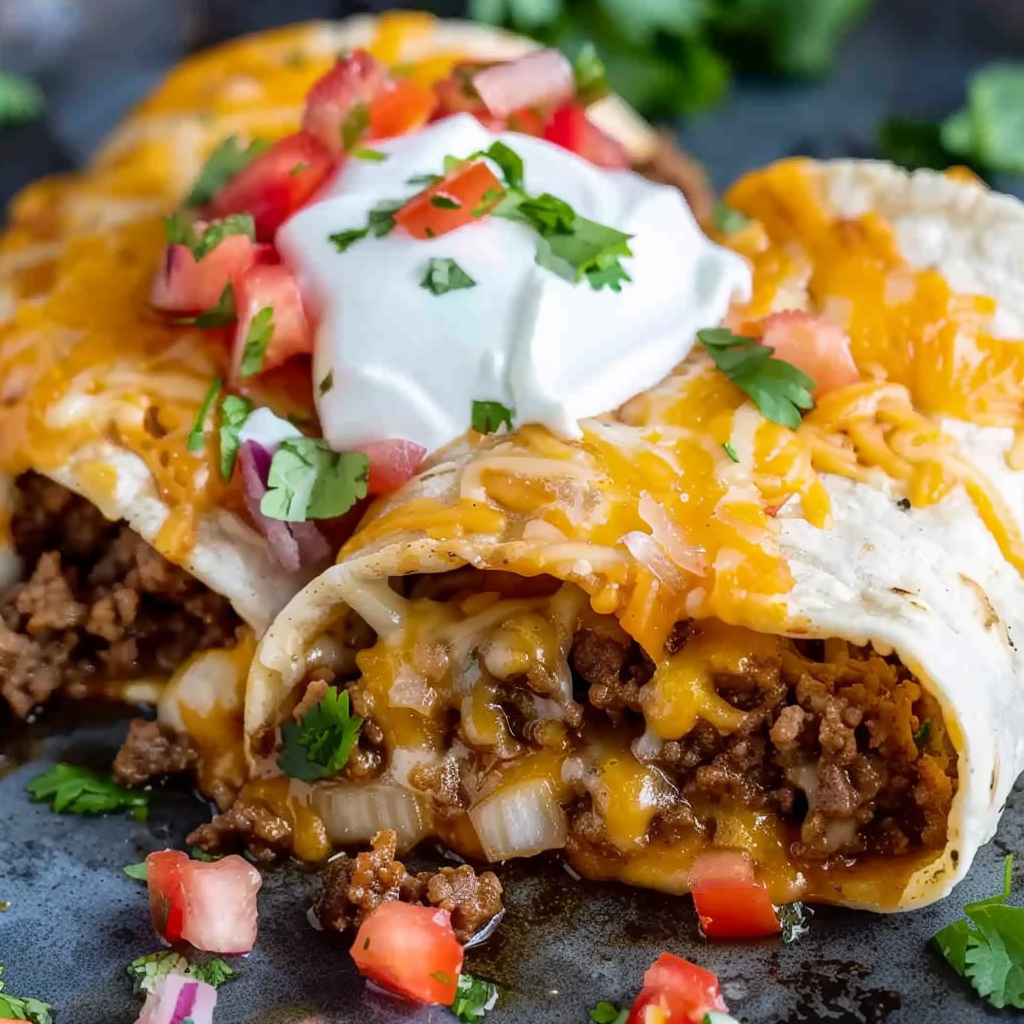Turn any night into taco night with this Beef Meximelt Cheesy Taco—a melty, savory fusion of seasoned ground beef, cheddar, Monterey Jack, and fresh toppings wrapped in a soft flour tortilla. Sealed in a skillet for extra crispness and gooey melt, this dish is inspired by nostalgic fast-food favorites but made better at home. Whether you’re hosting a taco bar or meal-prepping for the week, this quick and craveable recipe is your go-to comfort food with a Mexican cuisine twist.