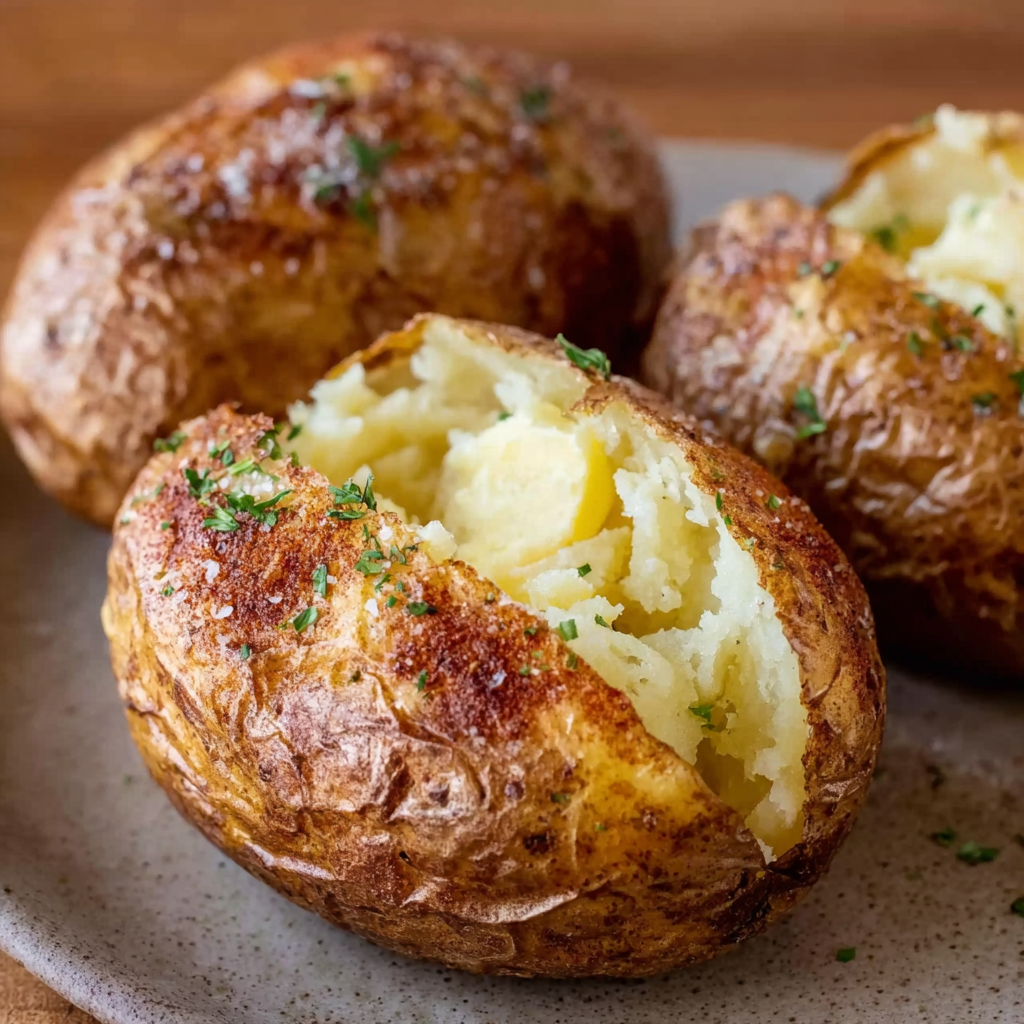 This recipe uses simple pantry ingredients to highlight the natural flavor of the potatoes. Ingredients:- 4 medium russet potatoes (about 8–10 oz / 225–285 g each)