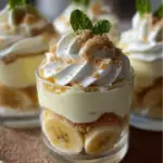 Banana Pudding Cups are proof that simple ingredients can create a truly memorable dessert. With their creamy layers, fresh banana slices, and soft vanilla wafers, they capture everything people love about traditional banana pudding while offering the convenience of individual servings. There is something special about serving desserts in personal portions — they feel thoughtful, festive, and perfectly sized. What makes this recipe especially appealing is its versatility. You can dress it up for elegant gatherings in glass dessert cups or keep it casual in small jars for backyard parties. The no bake preparation removes the stress of baking, making it accessible for cooks of all experience levels. Even children can help assemble the layers, turning dessert-making into a fun family activity. Beyond its ease, this recipe carries a sense of nostalgia. Many people associate banana pudding with family traditions, celebrations, and comforting meals. By transforming it into individual cups, you preserve that familiar flavor while adding a modern presentation. Whether you are making these Banana Pudding Cups for a special occasion or simply to satisfy a sweet craving, they are guaranteed to bring smiles. Once you try them, they are sure to become a repeat favorite in your kitchen. PrintBest Banana Pudding Cups Recipe – Creamy No Bake Dessert
