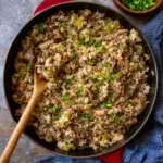 Easy dirty rice is one of those timeless comfort meals that proves simple ingredients can create incredible flavor. With seasoned ground beef, aromatic vegetables, fluffy rice, and classic Cajun spices, every bite is hearty and satisfying. It is the kind of meal that fills the kitchen with warm aromas and brings people together around the dinner table. One of the best things about this recipe is how approachable it is for cooks of all skill levels. Even if you have never made Cajun food before, the straightforward steps make it easy to follow. In just about 30 minutes, you can create a flavorful dish that tastes like it has been simmering all day. Another reason this dirty rice recipe stands out is its versatility. It works just as well for a quick family dinner as it does for meal prepping lunches for the week. Because the flavors continue to develop over time, leftovers can taste even better the next day. You can also easily customize the recipe by adjusting the spice level, adding extra vegetables, or pairing it with your favorite side dishes. If you enjoy hearty, one-pan meals that are packed with bold flavor, this Cajun dirty rice recipe deserves a place in your regular meal rotation. It captures the spirit of Southern comfort cooking while remaining simple and practical for everyday life. Serve it hot from the skillet, garnish with fresh herbs, and enjoy a delicious dish that delivers both comfort and flavor in every bite. PrintBest Dirty Rice Recipe – Easy Cajun Style Rice with Ground Beef