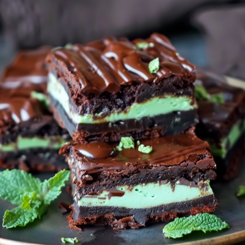 These Mint Brownies with Chocolate Frosting are a decadent, three-layered dessert featuring a rich, fudgy brownie base, a fluffy peppermint buttercream center, and a glossy chocolate topping. Perfect for holidays, parties, or casual indulgence, each square delivers a harmonious bite of cool mint and deep chocolate. Easy to prepare with everyday ingredients, these brownies are as visually stunning as they are delicious.