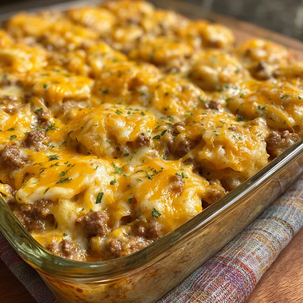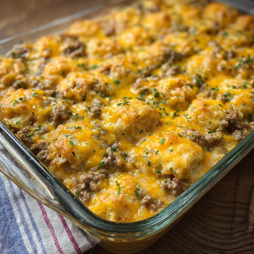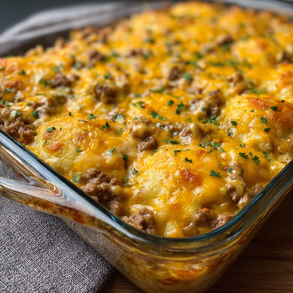 The Cheddar Bay Hamburger Casserole is everything you want in a one-dish dinner—cheesy, hearty, flavorful, and comforting. Its versatility makes it perfect for family dinners, meal prepping, or taking to potlucks. Garnish with a sprinkle of parsley or chopped green onions for a fresh pop of color before serving.