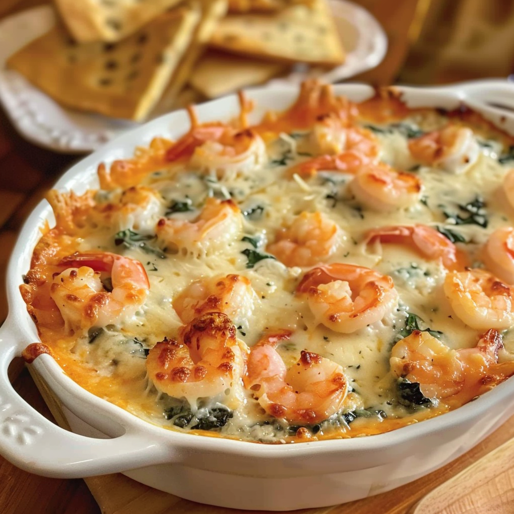 Whip up this Cheesy Creamy Shrimp and Crab Spinach Dip for the ultimate party appetizer! Packed with juicy shrimp, sweet lump crab, fresh spinach, and a decadent cheese blend, this baked dip is bubbling with flavor and perfect for serving with toasted bread, crackers, or fresh veggies. Ideal for holidays, game nights, or anytime you’re entertaining a crowd.