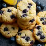 Can I use frozen blueberries in lemon blueberry cookies? Yes, but do not thaw them before mixing. This prevents the dough from becoming too wet and discolored. How do I make cookies chewy instead of cakey? Use the right butter-to-flour ratio, avoid overmixing, and don’t overbake. A quick look at chewy cookie baking tips can help. Can I add lemon glaze to these cookies? Absolutely. A glaze made from powdered sugar and lemon juice adds tang and sweetness. Let cookies cool before drizzling. How do I prevent fruit from making cookies soggy? Use frozen fruit directly from the freezer or pat fresh fruit dry. Bake thoroughly and cool on a wire rack. What kind of lemons are best for baking? Eureka or Lisbon lemons are most commonly used due to their consistent flavor and juice content. Can I make these cookies ahead of time? Yes, you can refrigerate the dough or freeze baked cookies for later. See the freezing section above for storage tips. Are lemon blueberry cookies freezer friendly? Yes. Freeze dough or baked cookies in airtight containers for up to 3 months. Thaw or bake from frozen as needed. PrintChewy Lemon Blueberry Cookies – Easy & Loaded with Real Fruit