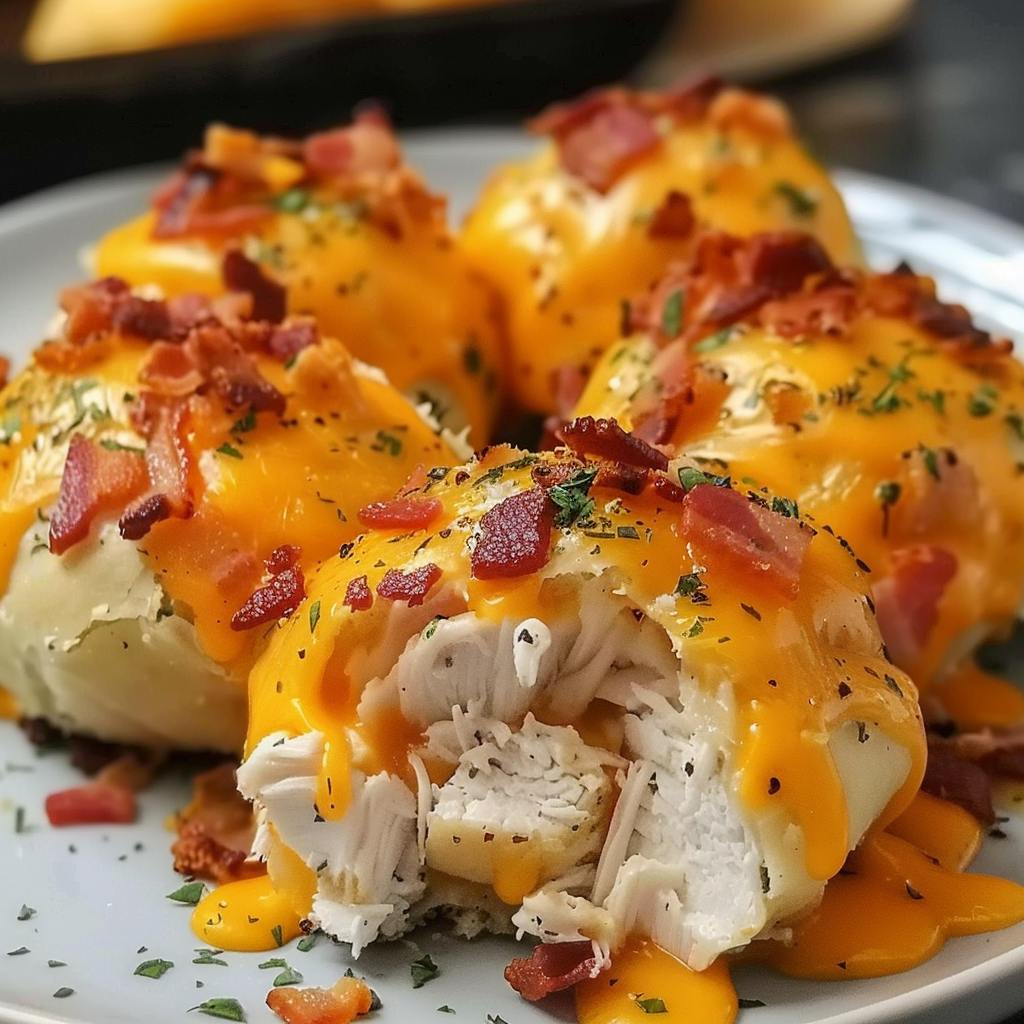 Chicken Bacon Ranch Cheddar Bombs are the perfect easy baked appetizer, stuffed with creamy ranch chicken, crispy bacon, and melted cheddar cheese. Wrapped in golden biscuit dough and brushed with butter, these savory bites are irresistible at any gathering or family dinner.