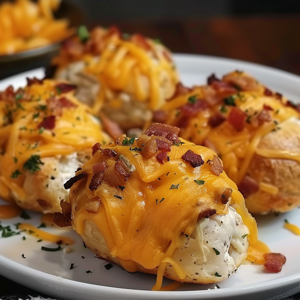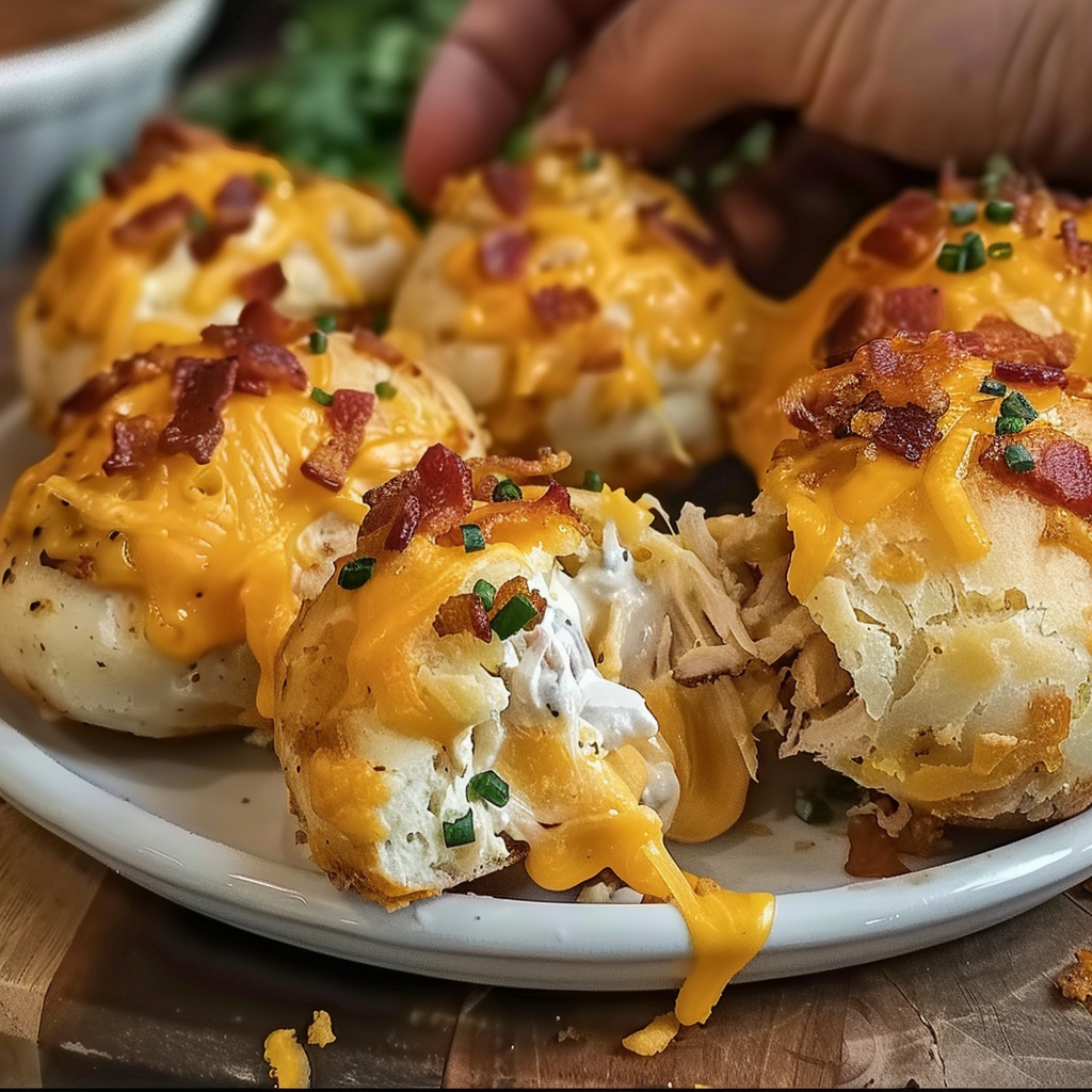 What makes these cheddar bombs so irresistible is their comforting blend of familiar flavors. The creamy ranch brings a cool, tangy element that perfectly complements the richness of the bacon and cheese. Meanwhile, the biscuit dough creates a soft yet crispy shell that holds everything together in one explosively tasty bite. This dish is a modern twist on classic Southern appetizers, combining the hearty appeal of a mini chicken sandwich with the indulgent charm of a cheese-stuffed biscuit.