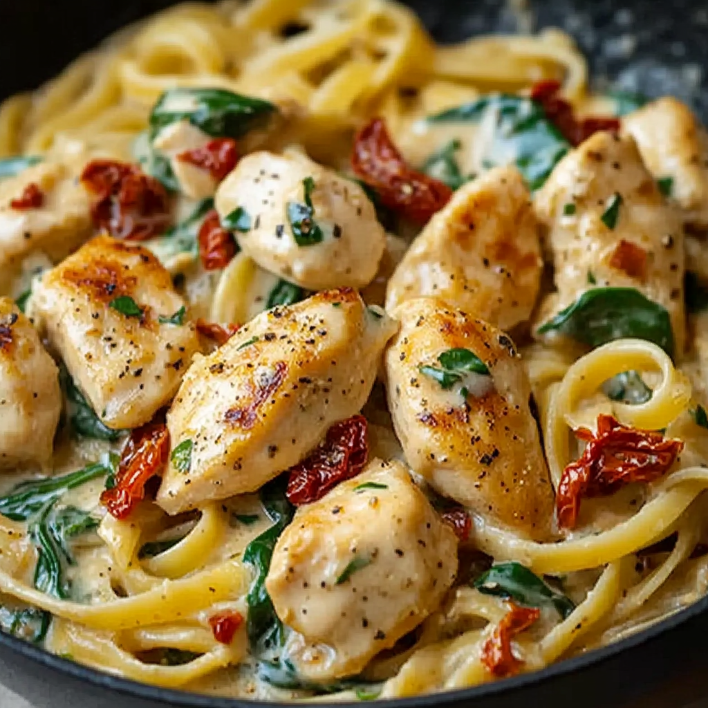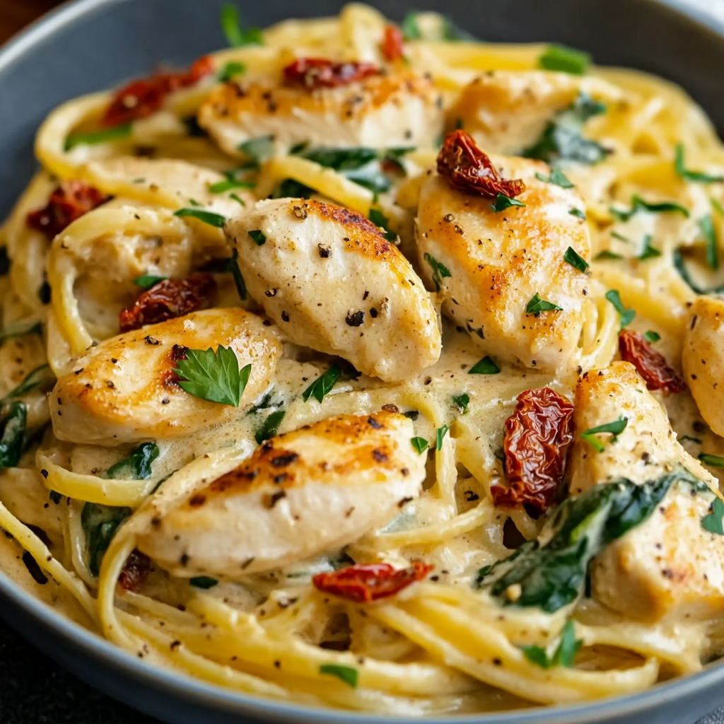 In just under 30 minutes, you can go from having raw chicken and dry pasta to sitting down with a steaming bowl of creamy, flavorful pasta. It’s the kind of dish that feels fancy, but in reality, it’s straightforward to prepare. You don’t need any complex skills or fancy equipment – just a skillet, a pot for cooking the pasta, and a few basic ingredients.