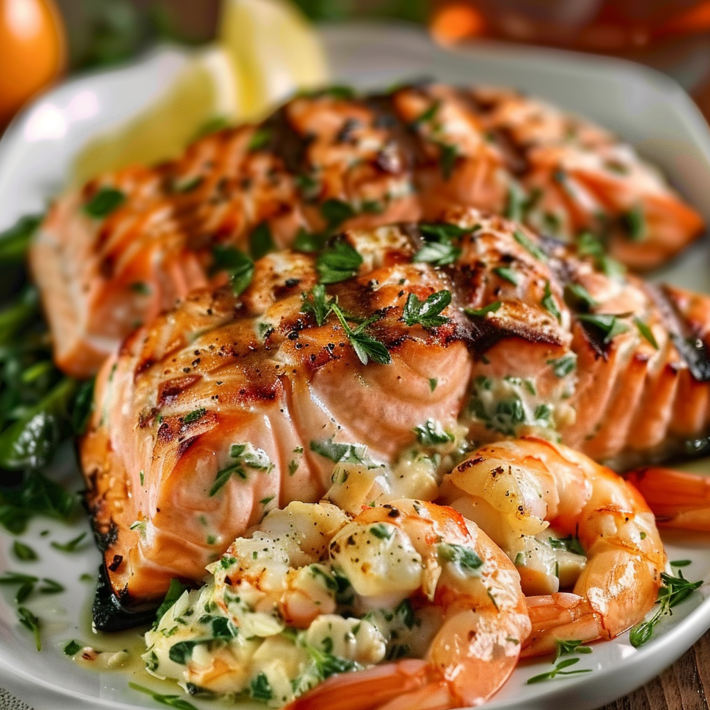 Crab and Shrimp Stuffed Salmon