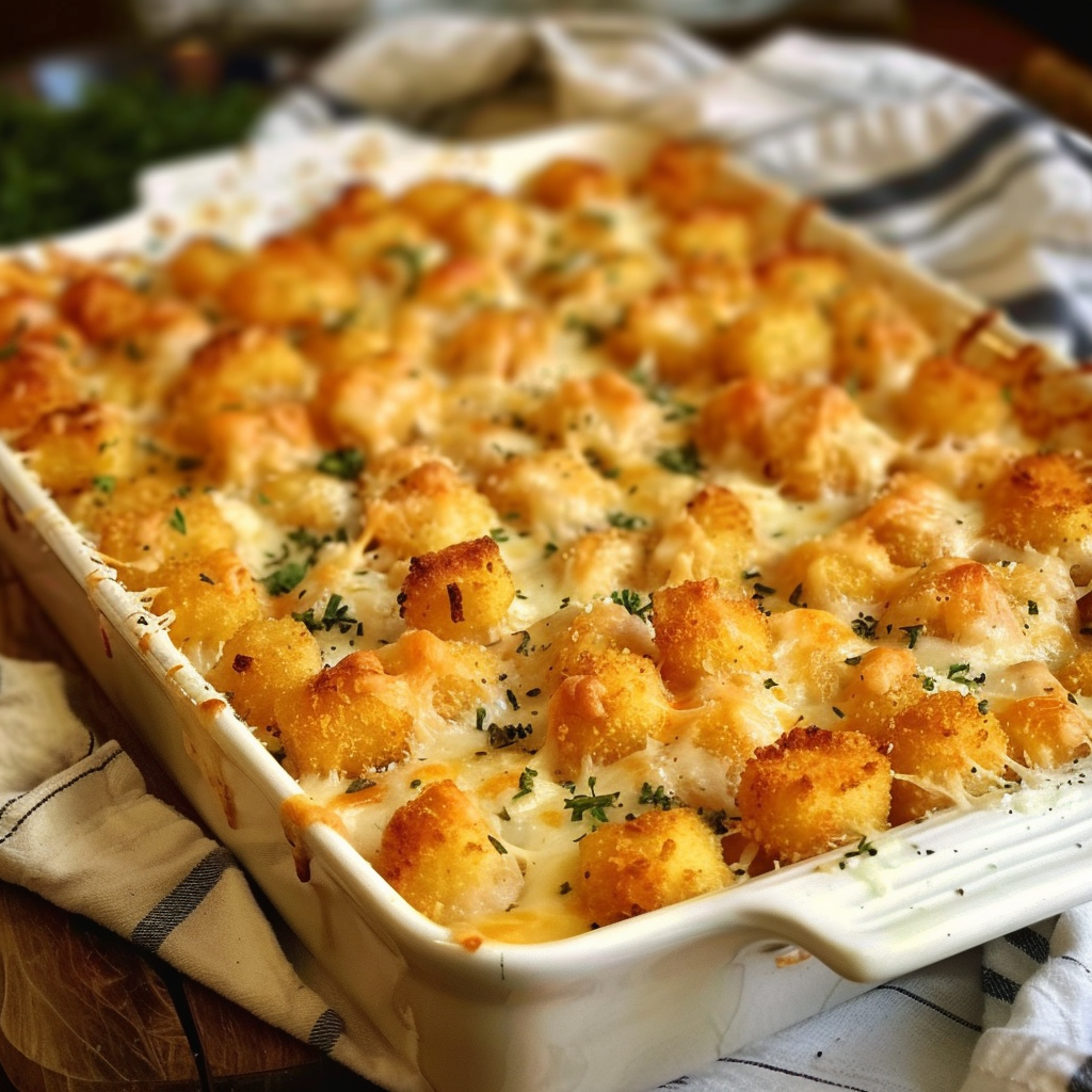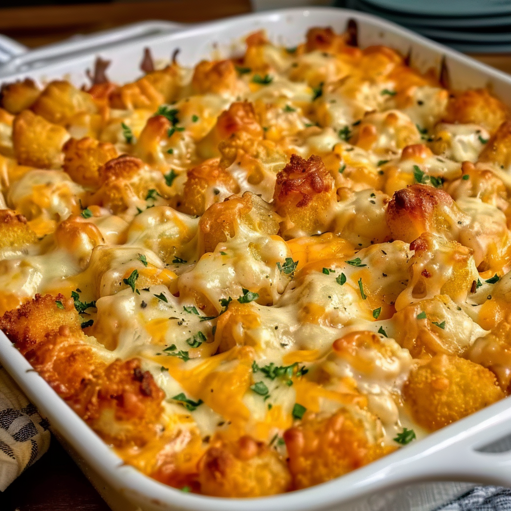 This casserole is a must-try because it delivers comforting flavor with minimal effort. The combination of creamy Alfredo sauce, tender chicken, smoky bacon, and crisp tater tots creates a satisfying balance of textures. It’s a one-pan meal that feels homemade while still being quick enough for busy weeknights.