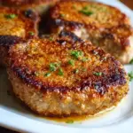 Juicy baked pork chops with garlic Parmesan crust are the ultimate comfort food made easy. These chops are coated in a crispy Parmesan and seasoned breadcrumb mixture, baked to golden perfection in under 30 minutes. The result is a flavorful, tender pork chop with a satisfying crunch—perfect for weeknights, meal prep, or impressing guests with minimal effort.