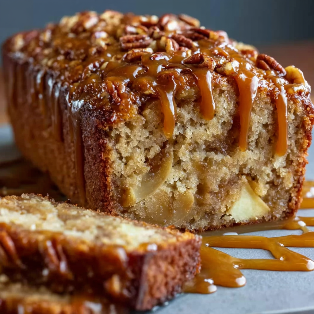 This bread isn’t just about flavor — it’s about creating a comforting moment. With every slice, you get a delicious blend of textures and flavors: moist, fluffy bread contrasted by spiced apple bites and the irresistible stickiness of caramel. You can enjoy it as-is, warm it up slightly, or top it with a scoop of ice cream. However you slice it, it’s a dessert that brings the feeling of fall to your kitchen.