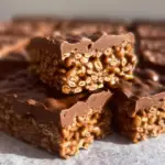 Homemade Crunch Bars prove that you don’t need complicated techniques or specialty tools to create something truly special. With just chocolate, crispy rice cereal, and a few simple additions, you can transform everyday ingredients into a nostalgic treat that feels both comforting and impressive. What makes this recipe stand out is its balance. The chocolate melts smoothly and sets with a glossy finish. The cereal maintains its crisp texture without becoming soggy. Each bite delivers that signature snap followed by a satisfying crunch. It’s simple, yet deeply satisfying. These bars are also wonderfully adaptable. You can change the chocolate blend, adjust sweetness, add mix-ins, or drizzle contrasting chocolate over the top. They’re ideal for holiday trays, homemade gifts, or an easy weekend dessert. Because they require no baking, they’re perfect year-round—even on warm days when turning on the oven isn’t appealing. Perhaps the most rewarding part is sharing them. There’s something special about offering a homemade version of a familiar favorite. It sparks conversation, brings back memories, and often leads to recipe requests. Once you try making these Homemade Crunch Bars, you may find they become a regular part of your dessert rotation. They’re quick, reliable, and endlessly customizable—everything a great homemade treat should be.\ PrintEasy Chocolate Crunch Bars Recipe – Crispy Rice Chocolate Candy