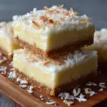 Can you make coconut cream bars ahead of time? Yes! These bars are best when chilled overnight, making them ideal for preparing in advance. Do coconut cream bars need to be refrigerated? Absolutely. They must be stored in the fridge to keep the cream filling stable. Can I use homemade whipped cream instead of Cool Whip? Yes, as long as the whipped cream is stabilized with gelatin or cornstarch to prevent it from deflating. What can I substitute for coconut cream pudding mix? Use vanilla or white chocolate instant pudding and add 1–2 teaspoons of coconut extract. How long do coconut cream bars last in the fridge? Up to 4 days when stored in an airtight container. Are coconut cream bars gluten-free? Not by default, but you can easily make them gluten-free with GF graham crackers or a nut-based crust. PrintEasy Coconut Cream Dessert Bars – Tropical & Crowd-Pleasing