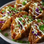 Crispy chicken wonton tacos are a crunchy, flavor packed appetizer made with seasoned chicken tucked inside crispy wonton shells. This easy recipe combines savory chicken, fresh toppings, and a sweet and tangy sauce for the perfect bite size taco. Ideal for parties, game day, or weeknight dinners, crispy chicken wonton tacos are fun, delicious, and always a crowd favorite.