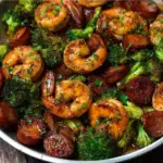 Easy honey garlic shrimp sausage and broccoli is a quick skillet meal made with tender shrimp smoky sausage and fresh broccoli in a sweet garlic sauce. This simple dinner recipe is perfect for busy weeknights meal prep or easy family meals. Honey garlic shrimp sausage and broccoli is delicious hearty and full of savory flavor.