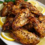 Lemon pepper chicken wings are one of those recipes that perfectly balance simplicity and bold flavor. With just a handful of ingredients and a straightforward cooking process, you can create wings that taste like they came from a restaurant kitchen. The combination of fresh lemon zest, cracked black pepper, and crispy roasted chicken makes each bite vibrant, savory, and satisfying. One of the best things about this recipe is its versatility. These wings work equally well for casual weeknight meals and special gatherings. They are perfect for sharing with friends during a game night, serving at a family celebration, or preparing as a weekend treat when you want something comforting and flavorful. The texture is another reason these wings stand out. Achieving crispy chicken wings in the oven can sometimes be tricky, but using baking powder and a wire rack makes a noticeable difference. The result is golden, crunchy skin that holds onto the lemon pepper sauce beautifully. The bright citrus notes keep the wings from feeling too heavy, while the pepper adds a warm, slightly spicy finish. This balance of flavors makes them appealing to a wide range of tastes. Even people who typically prefer milder foods often enjoy the refreshing zing that lemon brings to the dish. Another advantage of this recipe is how easy it is to customize. If you enjoy stronger citrus flavor, you can add extra lemon zest. If you like more heat, a pinch of crushed chili flakes can add a gentle kick. You can even experiment with adding herbs like thyme or oregano to the seasoning mix. Once you make these lemon pepper chicken wings at home, you may find they quickly become a go-to recipe in your kitchen. They are simple, reliable, and incredibly flavorful. Whether served with fresh vegetables, roasted potatoes, or a light salad, these wings bring brightness and excitement to any meal. PrintEasy Lemon Pepper Chicken Wings – Crispy Oven Baked Wing Recipe