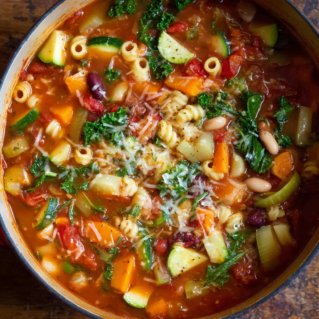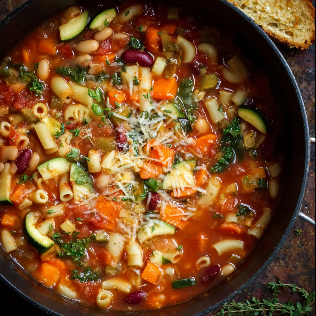This easy one pot minestrone soup is a light yet filling Italian-style vegetable soup made with seasonal veggies, beans, and small pasta. Simmered in a tomato-herb broth, it’s perfect for cozy dinners, weekly meal prep, or a comforting lunch. Customize it with your favorite vegetables and keep it vegan or vegetarian with simple swaps.