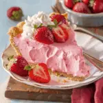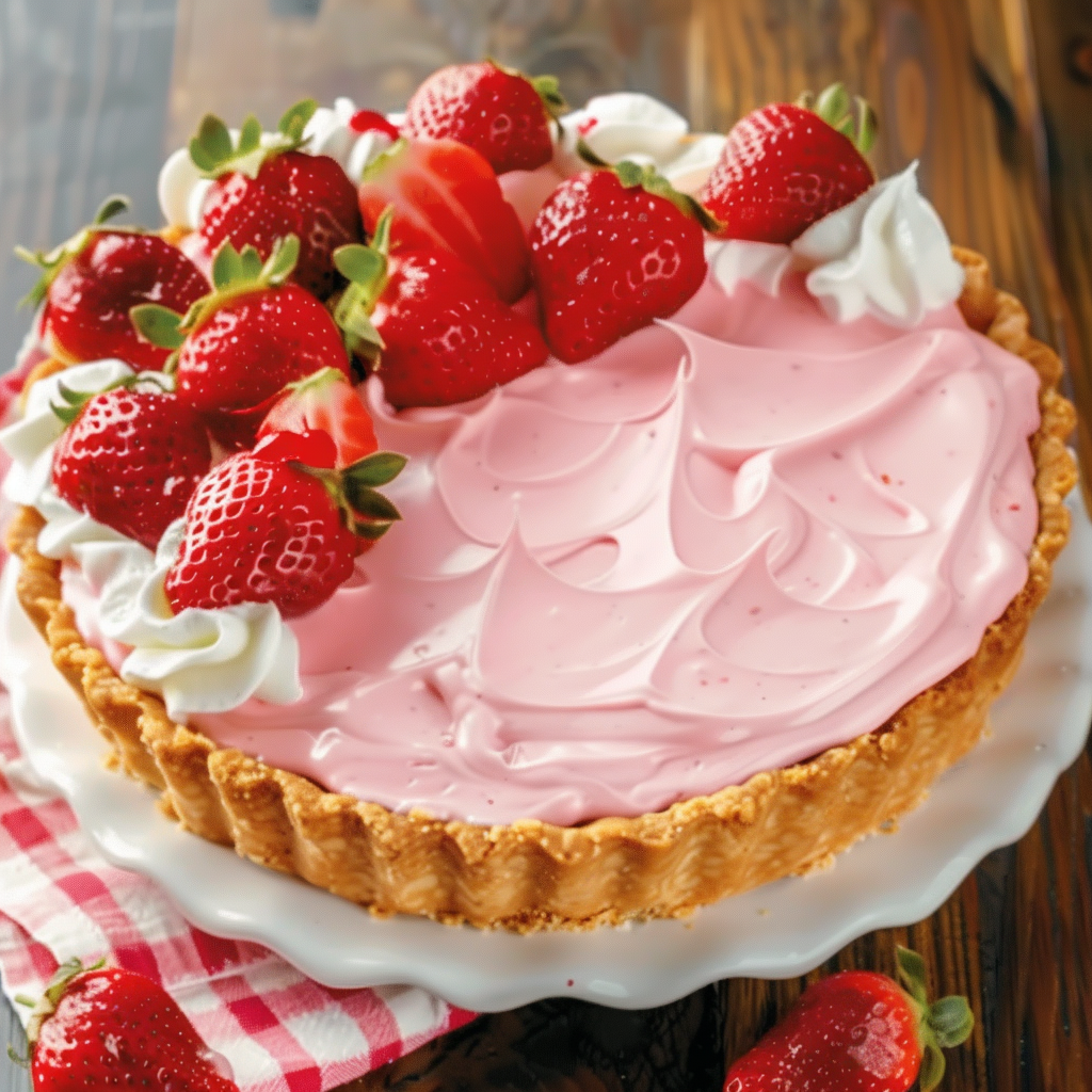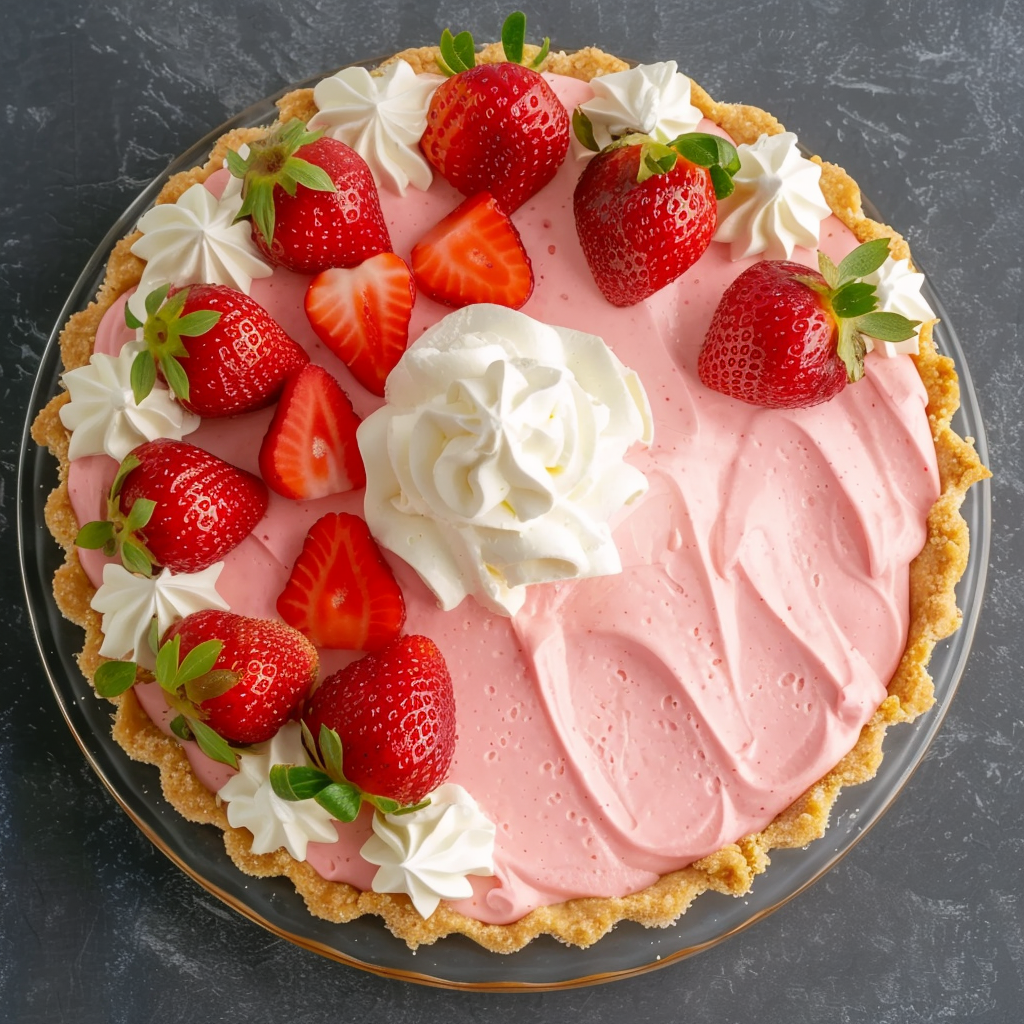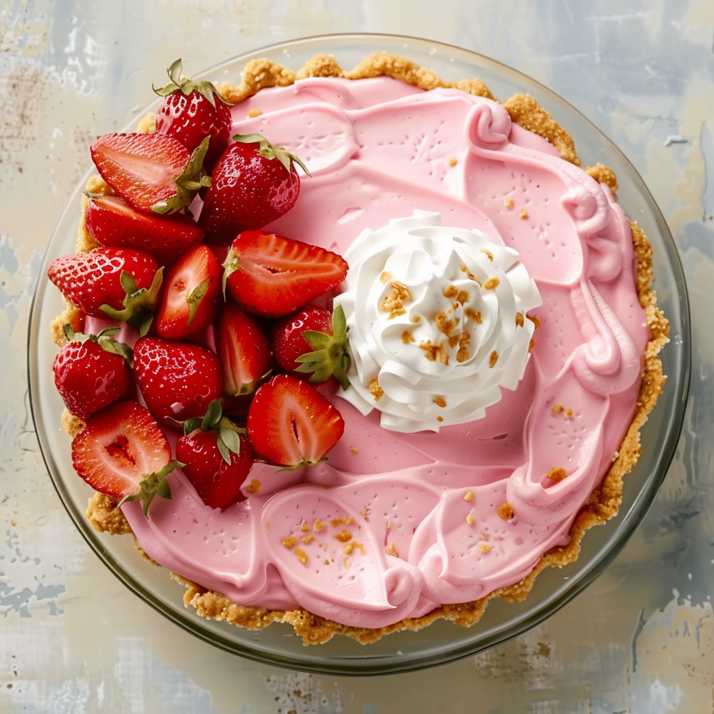 The crust is made from a simple combination of graham cracker crumbs, sugar, and melted butter. This classic graham cracker crust provides the perfect sweet and crunchy base. The filling features softened cream cheese blended with condensed milk and lemon juice for a refreshing, tangy balance. Then, it’s all folded together with whipped topping and chopped strawberries for a cloud-like texture. Best of all, it sets up beautifully in the fridge—no baking required unless you prefer your crust toasted.