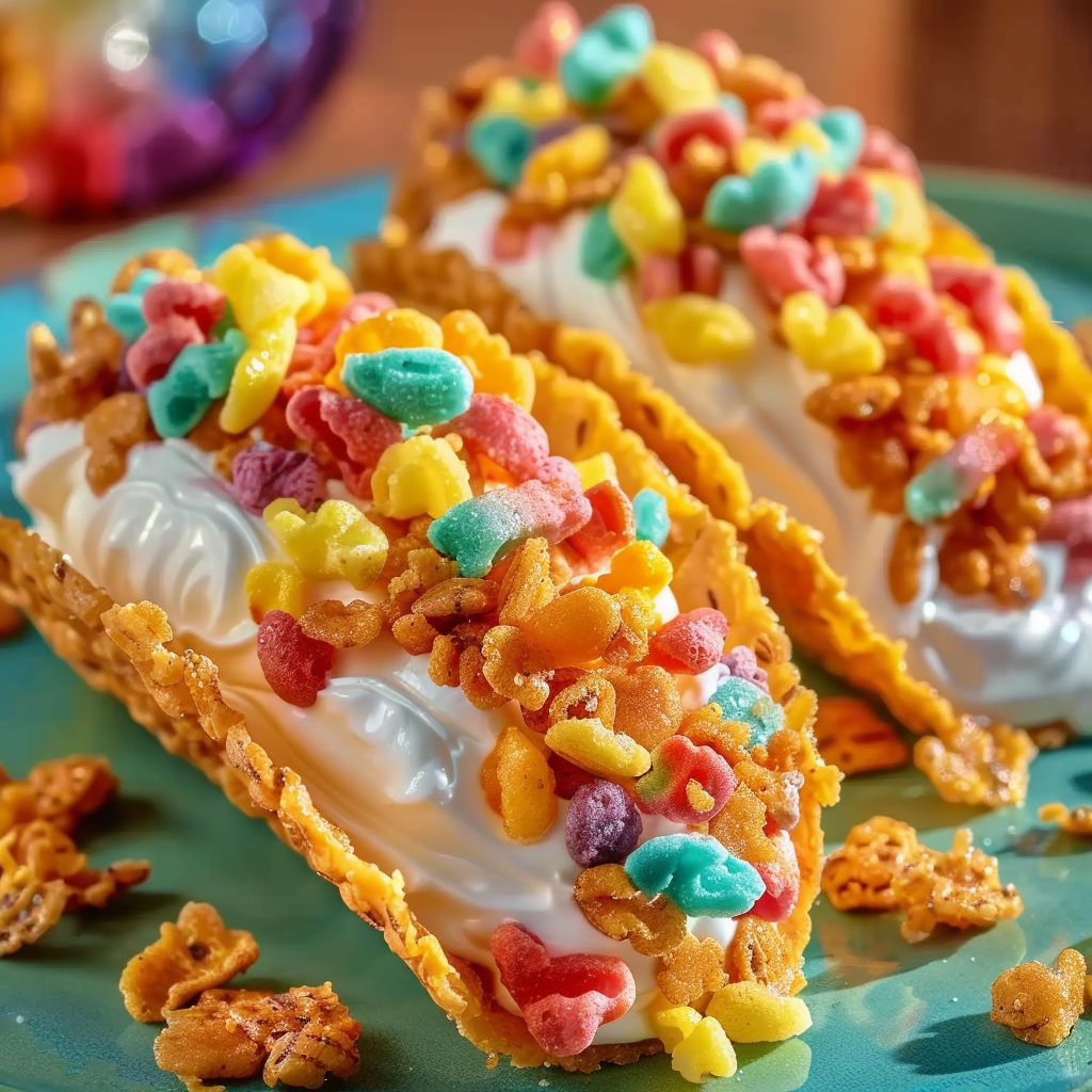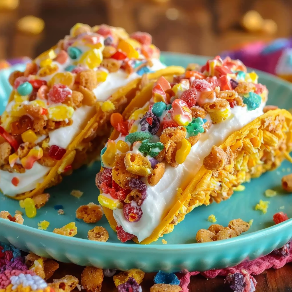 Use holiday cereals (like red-and-green Pebbles for Christmas or pastel ones for Easter) and add festive toppings such as candy canes, edible glitter, or themed sprinkles. These ideas are widely showcased in colorful party desserts and make your tacos a hit at seasonal gatherings. -