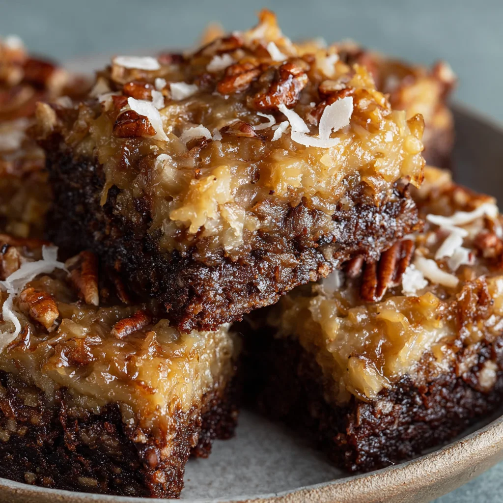 Serving German Chocolate Brownies in a visually appealing way enhances the overall experience, making them even more irresistible.