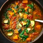 This Hearty Vegetable Lentil Soup with Greens is a cozy, plant-based dish loaded with earthy lentils, fresh vegetables, and nutrient-dense greens. Flavored with cumin, thyme, and a touch of lemon, it’s a one-pot wonder that’s perfect for weeknight dinners, meal prep, or warming up on cold days.