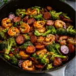 This sticky honey garlic shrimp sausage and broccoli skillet is a fast, one-pan dinner that brings together sweet and savory flavors in a satisfying rice bowl. Ready in 30 minutes, it features juicy shrimp, smoky sausage, and tender broccoli tossed in a bold garlic soy glaze. Perfect for weeknights, meal prep, or game-day gatherings, it’s a customizable, high-protein dish that tastes like takeout—without the hassle.