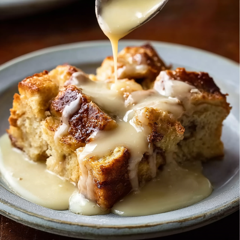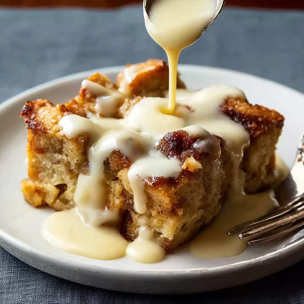 This cozy bread pudding recipe is the ultimate comfort dessert. Made with soft, custard-soaked bread and baked until golden, it’s finished with a warm, silky vanilla sauce that melts into every bite. Simple ingredients, easy steps, and endless variation possibilities make this a go-to treat for fall, winter, or holiday gatherings.