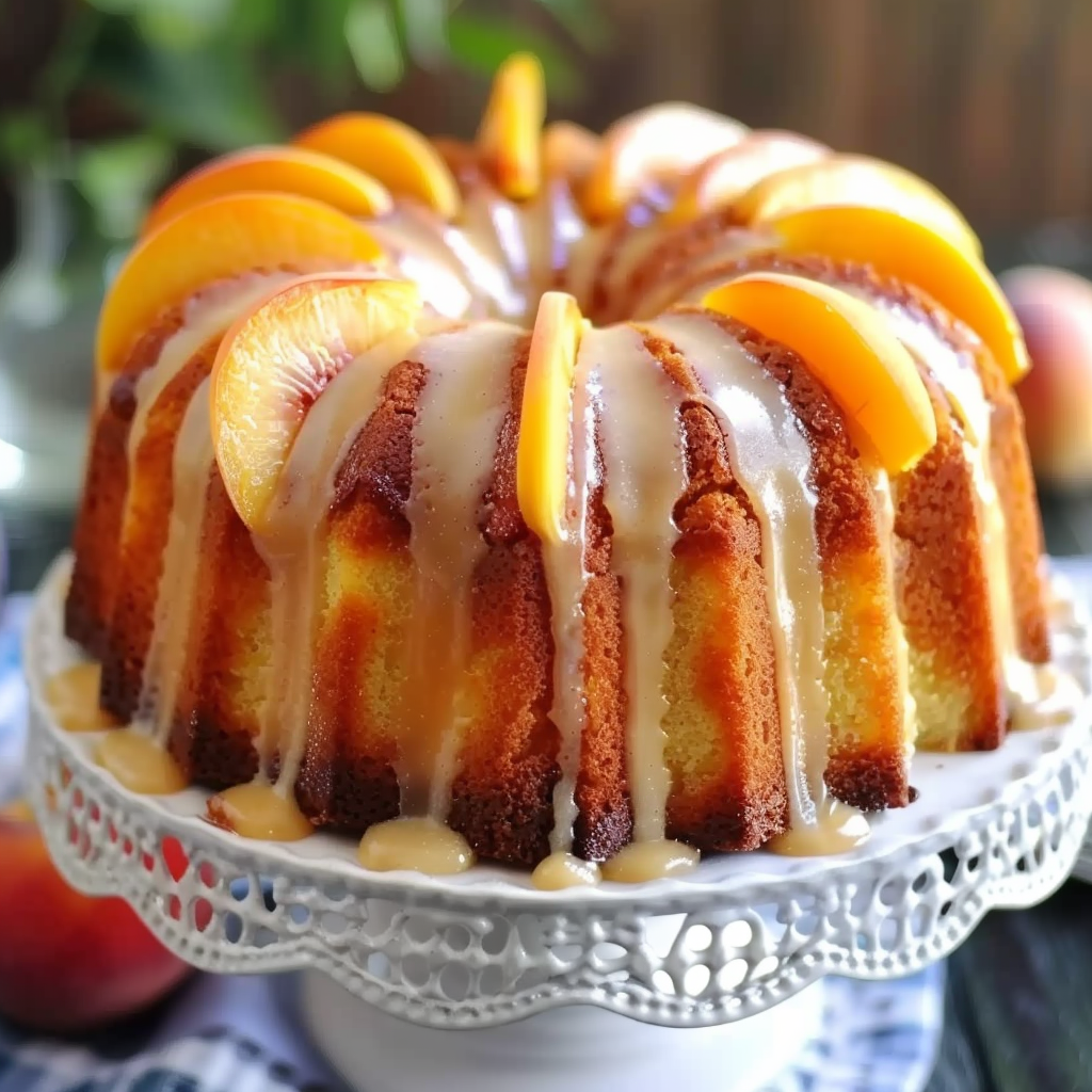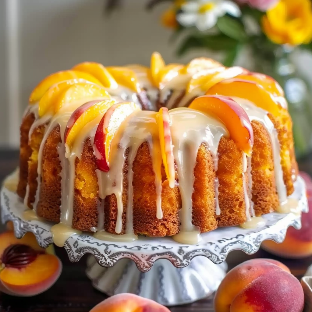 Blend fresh peaches with powdered sugar and a splash of lemon juice for a fruit-forward glaze drizzled over the cooled cake. -