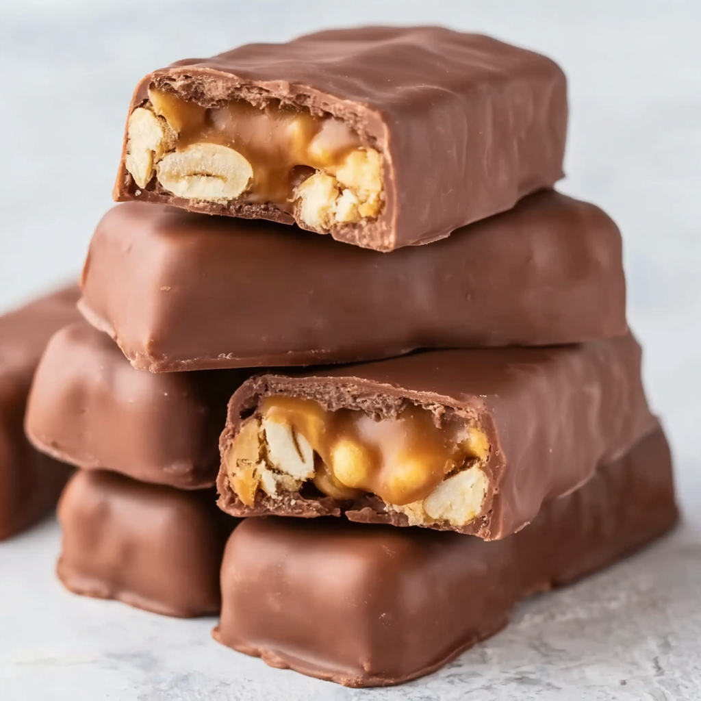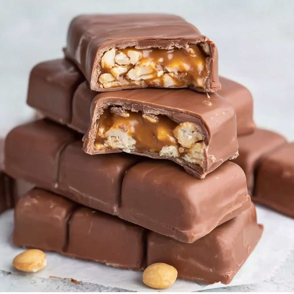 What makes this recipe so appealing is the contrast in textures. The chocolate layers are smooth and rich, the nougat center is soft and slightly fluffy, the caramel is gooey and buttery, and the peanuts add a delicious crunch with just the right salty balance. Together, these layers create a homemade bar that tastes indulgent without being overly complicated to prepare.