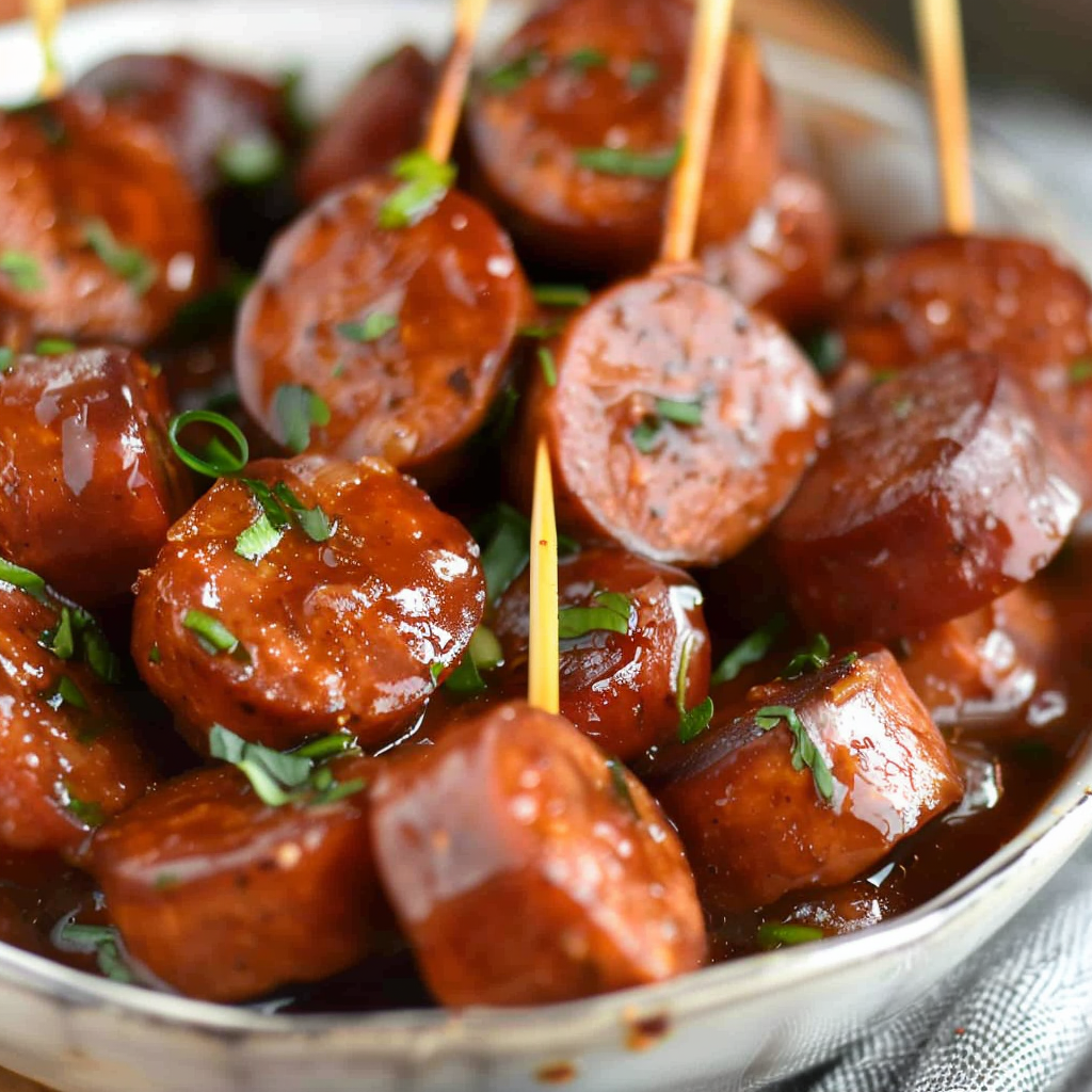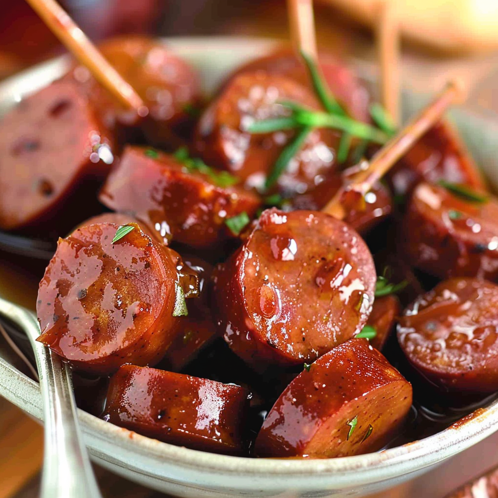 These ingredients together create a harmonious blend that clings to the kielbasa without overpowering its natural taste. The result is a bite that’s sweet at first, tangy in the middle, and savory at the finish—a perfect trifecta for party food.