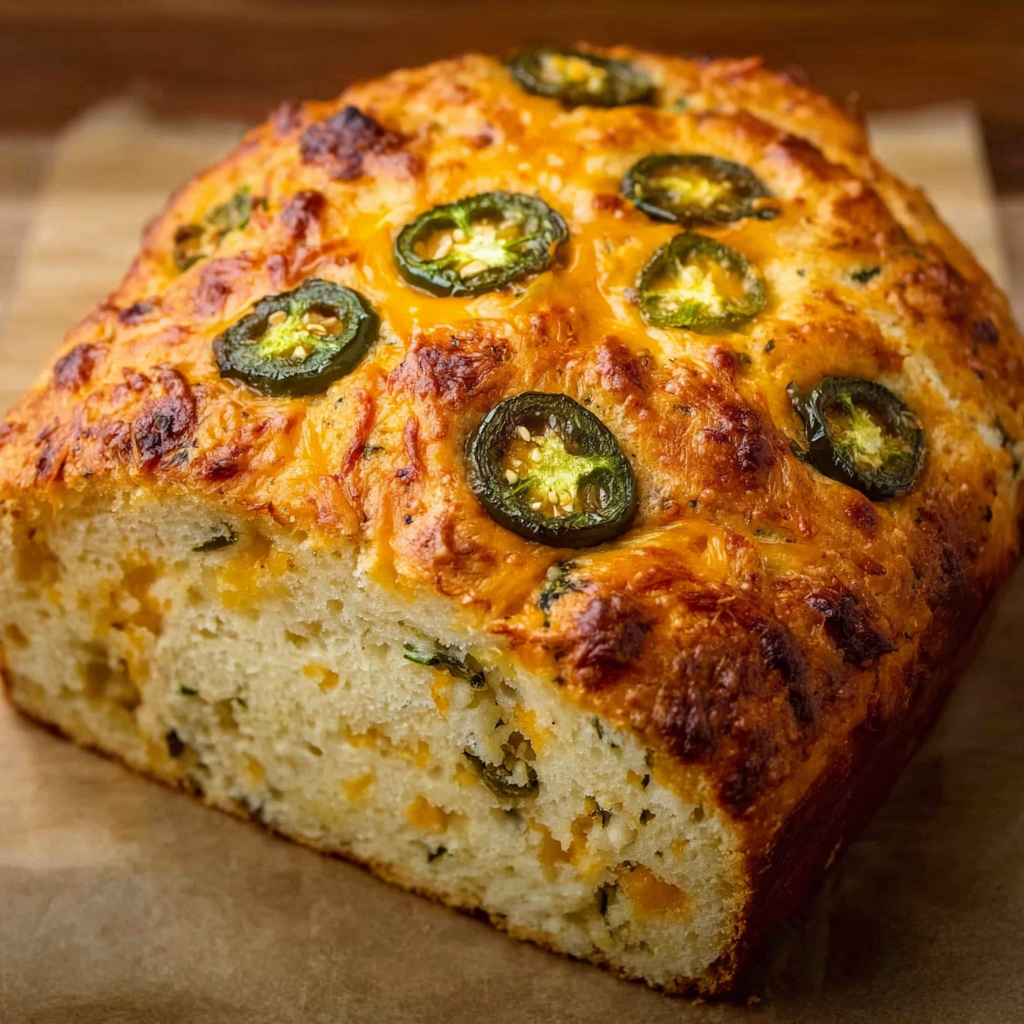 At its core, this bread is about balance: the spice of the jalapeños is mellowed by the creaminess of cheddar, and the soft crumb is offset by a crusty exterior. Whether served as a side, snack, or appetizer, it adds a vibrant touch to any table. Popular in comfort food circles and artisan baking communities, this loaf is also a go-to during cooler months and game-day events.