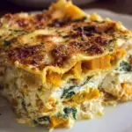 Can you make butternut squash lasagna ahead of time? Yes. Assemble it up to two days in advance, refrigerate, and bake when needed. It also freezes well for longer storage. What type of cheese goes best with butternut squash? Mild cheeses like ricotta and mozzarella work well, balanced by salty Parmesan. These enhance squash’s natural sweetness without overpowering it. Can I use frozen spinach instead of fresh? Absolutely. Thaw and squeeze out extra moisture before cooking. It’s a great time-saver. Is vegetarian lasagna filling enough for meat-eaters? Yes. With rich layers and roasted vegetables, this lasagna is hearty enough to satisfy even non-vegetarians. How do I keep lasagna from being watery? Roast the squash instead of boiling, drain spinach well, and don’t overload with sauce. Let it rest after baking to firm up layers. PrintNo-Meat Butternut Squash Lasagna the Whole Family Will Love