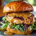 This Oktoberfest Maple Mustard Chicken Burger is a celebration of German-inspired flavors in burger form. Juicy ground chicken is seasoned and seared to golden perfection, then topped with melty Swiss cheese, crispy chicken ham, caramelized onions, and crunchy slaw. All of it comes together inside a butter-toasted pretzel bun, slathered with a creamy maple mustard sauce that delivers sweet, tangy contrast. Perfect for Oktoberfest gatherings or weeknight dinners, this burger is bold, comforting, and deeply satisfying.