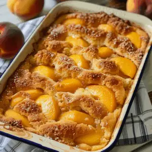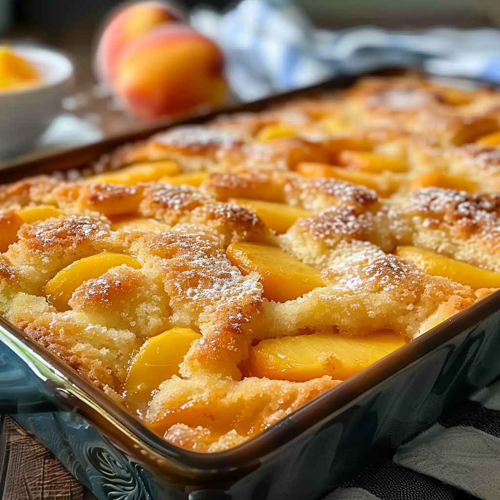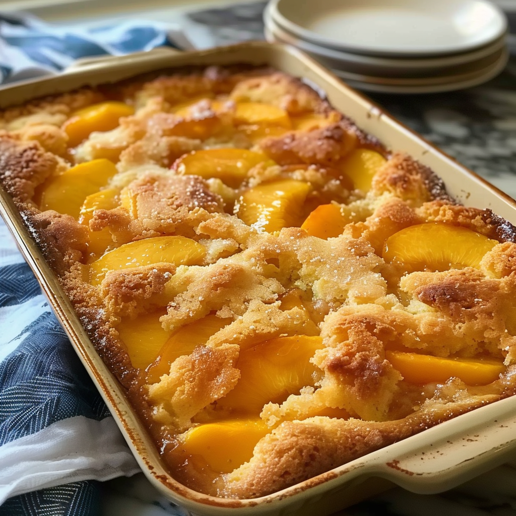 Its flavor also captures the essence of summer. Peaches—especially the syrupy canned kind used here—add a natural sweetness and juicy texture that pair perfectly with the buttery, slightly crispy topping made from yellow cake mix. If you’re curious about how these mixes contribute to the texture, this cake mixture guide breaks down what makes yellow cake mix so effective in recipes like this.