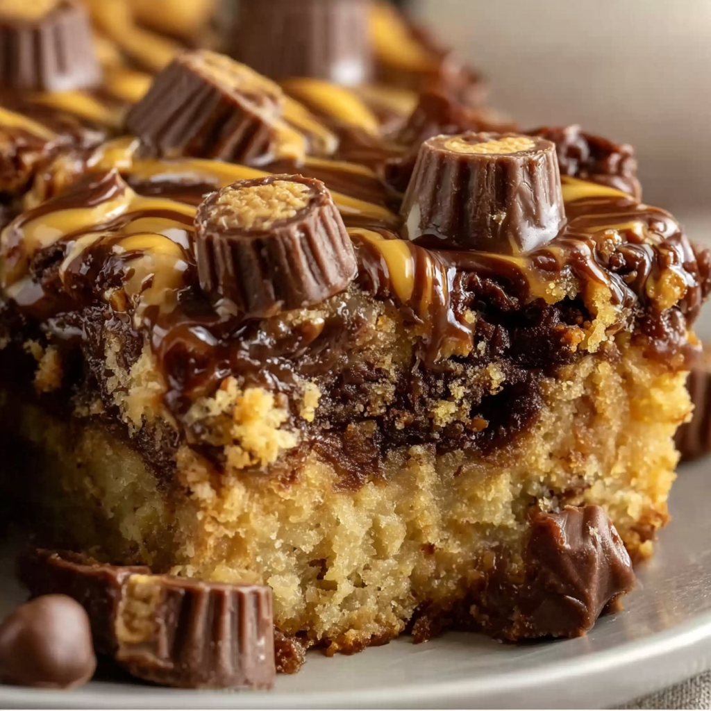 Rooted in the simplicity of the dump cake tradition, this recipe draws from classics like chocolate cake and modern cake mix baking. Creamy peanut butter pairs with pudding techniques seen in pudding cake desserts, while inspiration flows from visual platforms featuring chocolate peanut butter recipes, Reese’s Pieces dessert ideas, and classic dump cake variations.