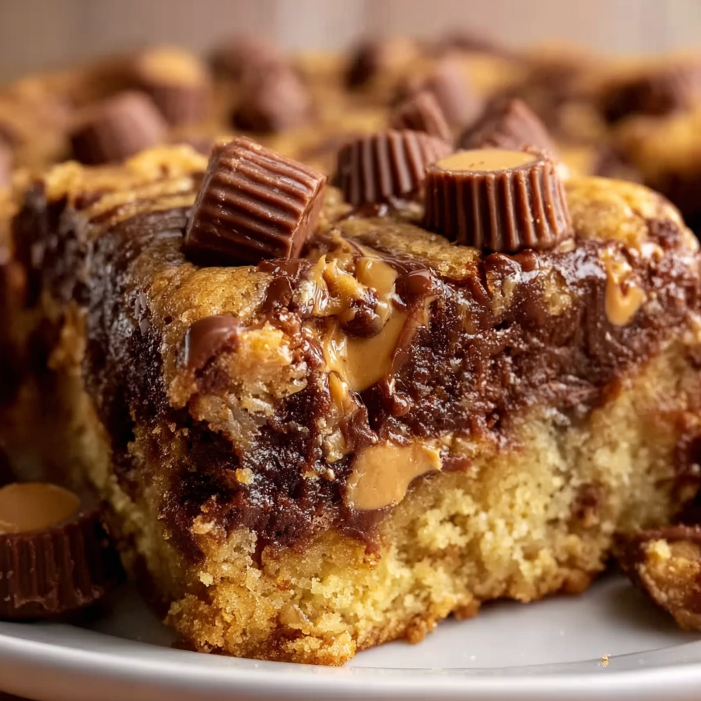 In this version, chocolate cake mix meets instant chocolate pudding, mini peanut butter cups, peanut butter chips, and a generous drizzle of melted butter. The pudding adds moisture that partially absorbs into the cake mix, creating that beloved soft, layered effect. If you’re familiar with recipes like pudding cake desserts or cobblers, the texture of this cake will feel delightfully familiar.