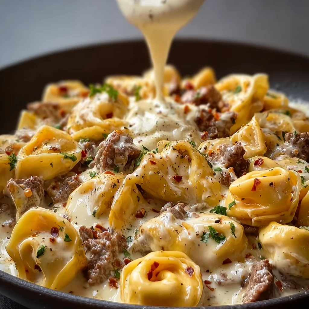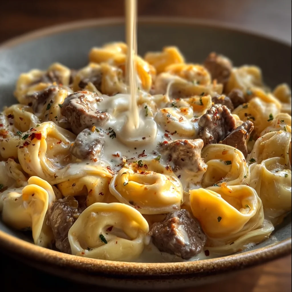 A bold and hearty twist on a Philly classic! This Philly Cheesesteak Tortellini Pasta combines tender slices of beef, sautéed onions, peppers, mushrooms, and cheese-filled tortellini, all smothered in melted provolone or mozzarella.