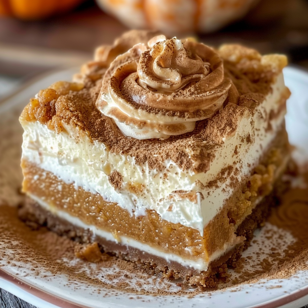 The base of the cake is typically made with a box of spice cake mix mixed with butter and egg to form a chewy crust. On top of that sits the real star—a luscious filling made from cream cheese, pumpkin, eggs, powdered sugar, and spices. The cake is baked until the edges are set, but the center remains slightly jiggly, preserving its signature gooey texture. That soft, custard-like center is what keeps people coming back for more.
