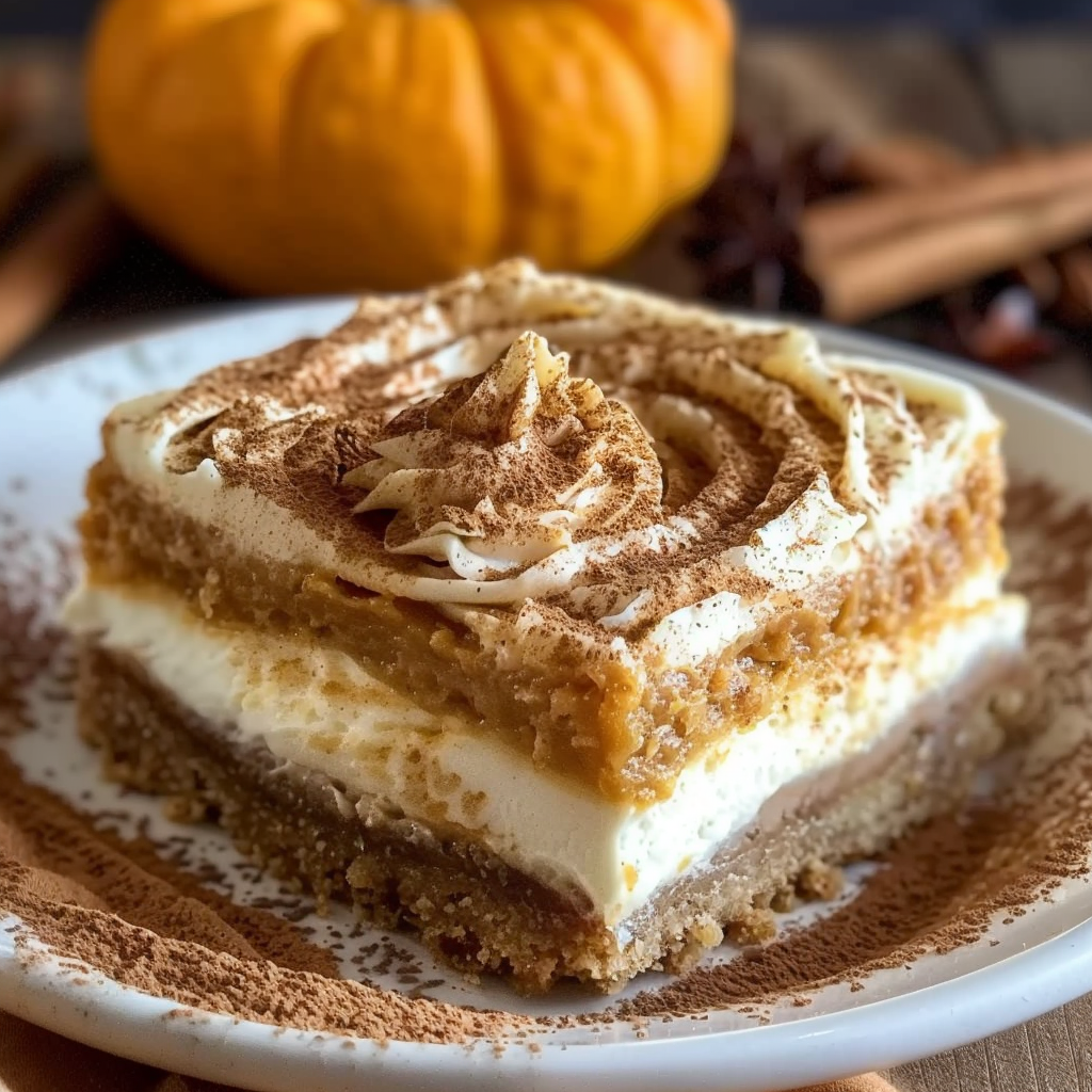 The base of the cake is typically made with a box of spice cake mix mixed with butter and egg to form a chewy crust. On top of that sits the real star—a luscious filling made from cream cheese, pumpkin, eggs, powdered sugar, and spices. The cake is baked until the edges are set, but the center remains slightly jiggly, preserving its signature gooey texture. That soft, custard-like center is what keeps people coming back for more.