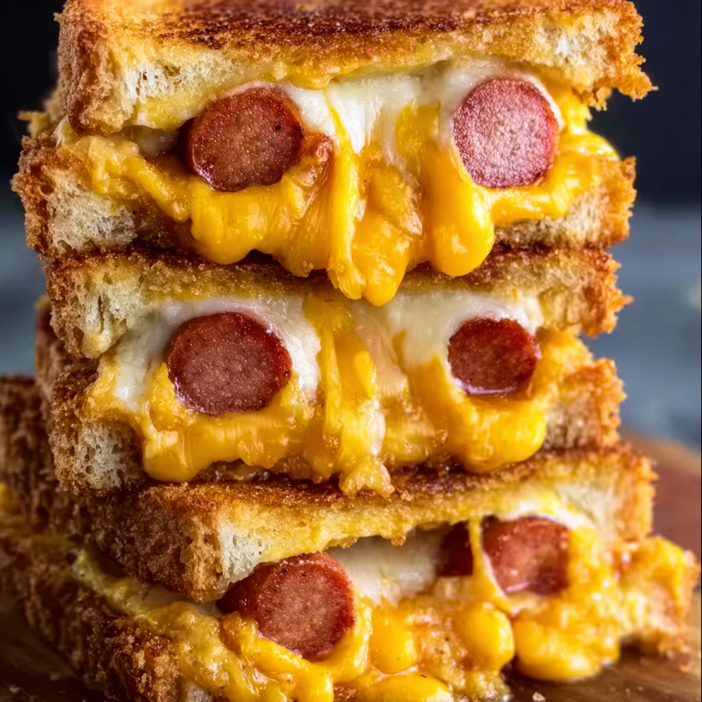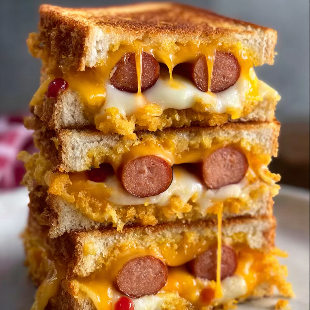 The Corn-Dog Grilled Cheese is a flavorful hybrid of two beloved classics: the all-American corn dog and the grilled cheese sandwich. It fuses the savory taste of hot dogs with the melty goodness of cheddar cheese, all held together by crispy, golden slices of buttery bread. It’s not deep-fried like a traditional corn dog—instead, it’s pan-toasted, giving it a satisfying crunch without the extra grease.