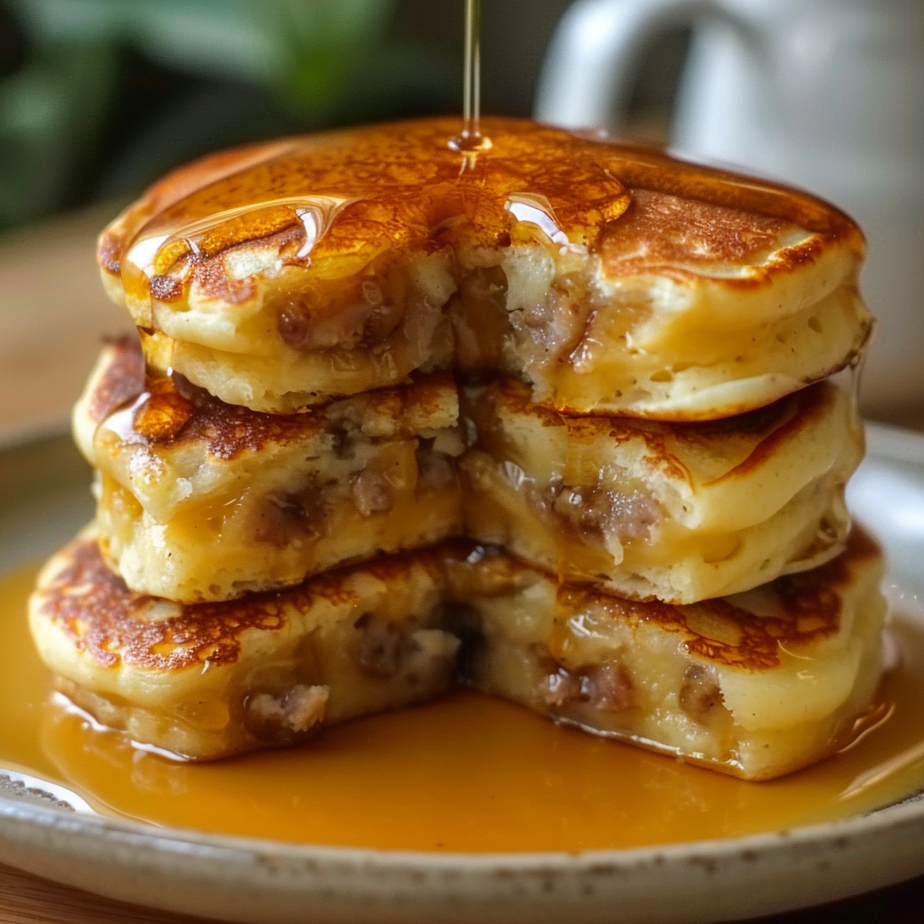 Savory cheese version: Add shredded cheddar or Swiss cheese to the pancake batter. The salty richness pairs beautifully with the sausage.