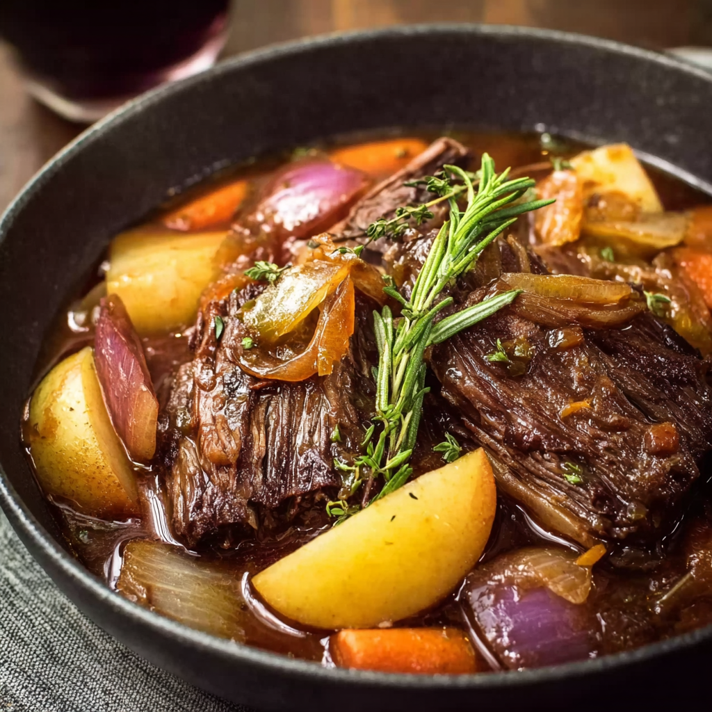 More than just a meal, this is fall comfort food at its best—perfect for family dinners, cozy weekends, or casual get-togethers. If you’re looking for something that’s both simple and deeply flavorful, this dish delivers. Unlike typical stews, the addition of cider and apples offers a seasonal twist that sets this recipe apart. The technique of braising—a method where meat is seared then simmered in liquid—ensures melt-in-your-mouth results. Learn more about braising and why it’s ideal for tough cuts like chuck roast.
