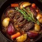 More than just a meal, this is fall comfort food at its best—perfect for family dinners, cozy weekends, or casual get-togethers. If you’re looking for something that’s both simple and deeply flavorful, this dish delivers. Unlike typical stews, the addition of cider and apples offers a seasonal twist that sets this recipe apart. The technique of braising—a method where meat is seared then simmered in liquid—ensures melt-in-your-mouth results. Learn more about braising and why it’s ideal for tough cuts like chuck roast.