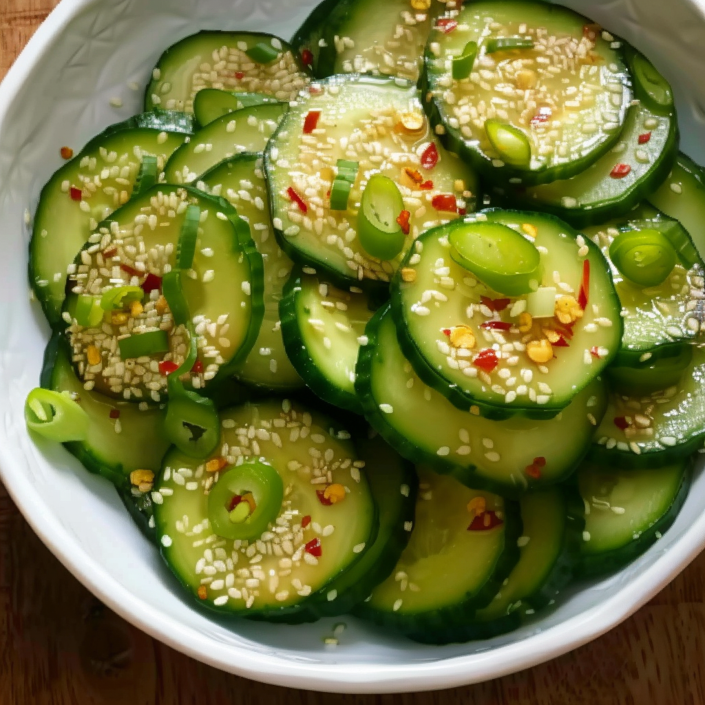 Rich in Nutrients: Cucumbers offer vitamin K, vitamin C, magnesium, and potassium. Green onions and sesame seeds add even more vitamins and healthy fats.