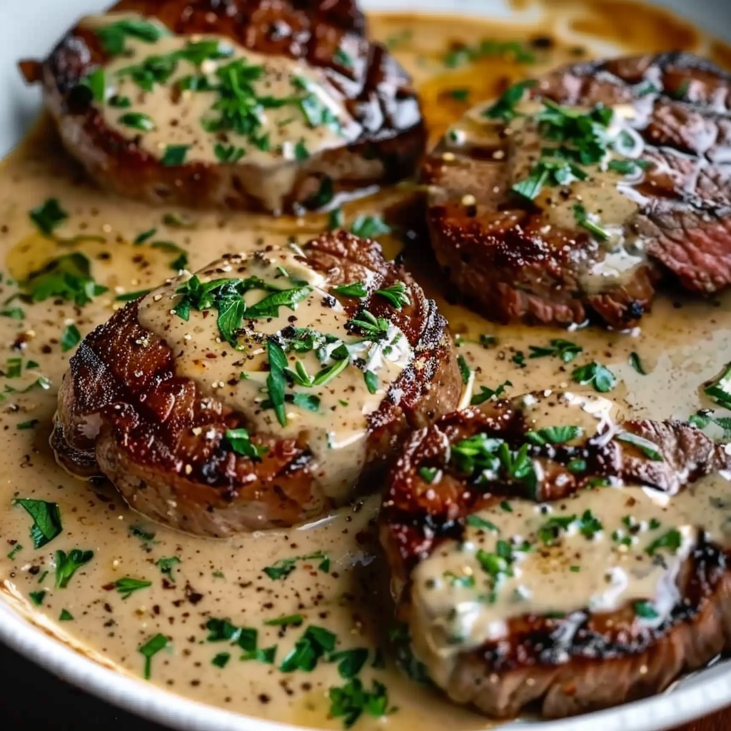 This Steak with Garlic Cream Sauce is the ultimate one-pan dinner. Perfectly seared ribeye or sirloin is paired with a rich, velvety garlic-Parmesan cream sauce that comes together in minutes. With restaurant-quality flavor and weeknight simplicity, it’s a dish you’ll make again and again. Serve it with mashed potatoes, pasta, or low-carb sides for a meal that’s as comforting as it is elegant.